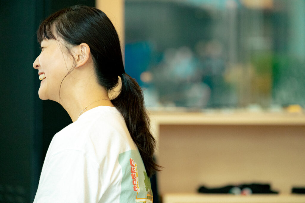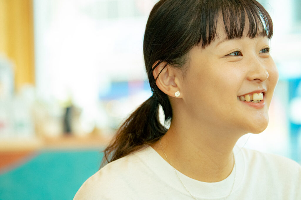 テニスをしていたときは、休みの日に遊ぶとか、彼氏がいるとか、そういうのは“弱み”だと考えていました。だから、自分の情報を極力ひとにさらけ出さないようにしていた。働くようになってからも、仕事は仕事って考えで、職場で自分の感情を出したり気持ちを話したりしないようにしていました。でも、この会社では違うと思っていて。ときに感情をきちんと表現したり、仕事と関係のない話をしたり、いい意味で、仕事とプライベートがごちゃまぜで、ありのままの自分でいい。そういうことを大切にしたいと、いまは思っています。