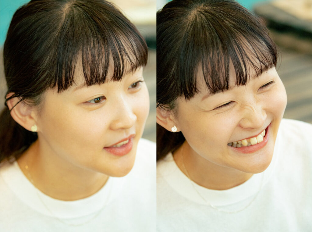 テニスをしていたときは、休みの日に遊ぶとか、彼氏がいるとか、そういうのは“弱み”だと考えていました。だから、自分の情報を極力ひとにさらけ出さないようにしていた。働くようになってからも、仕事は仕事って考えで、職場で自分の感情を出したり気持ちを話したりしないようにしていました。でも、この会社では違うと思っていて。ときに感情をきちんと表現したり、仕事と関係のない話をしたり、いい意味で、仕事とプライベートがごちゃまぜで、ありのままの自分でいい。そういうことを大切にしたいと、いまは思っています。